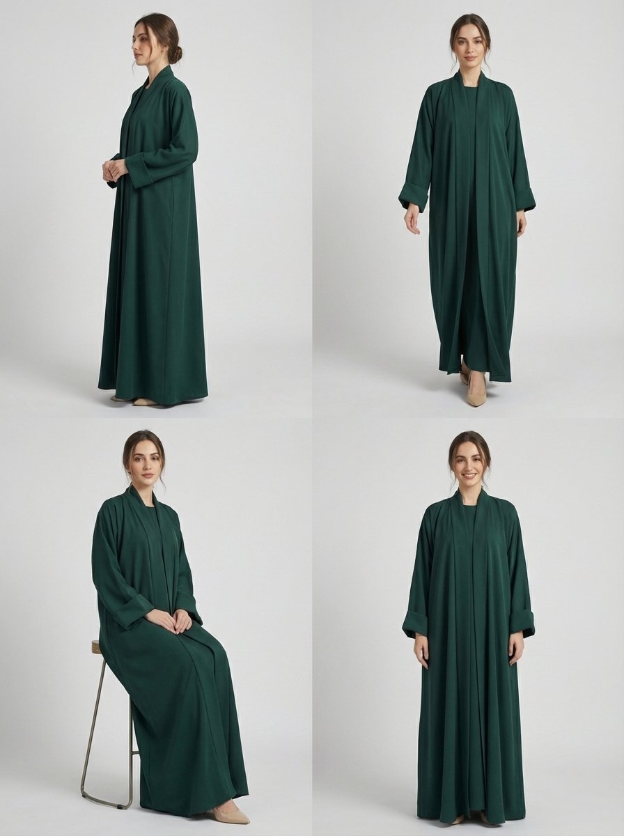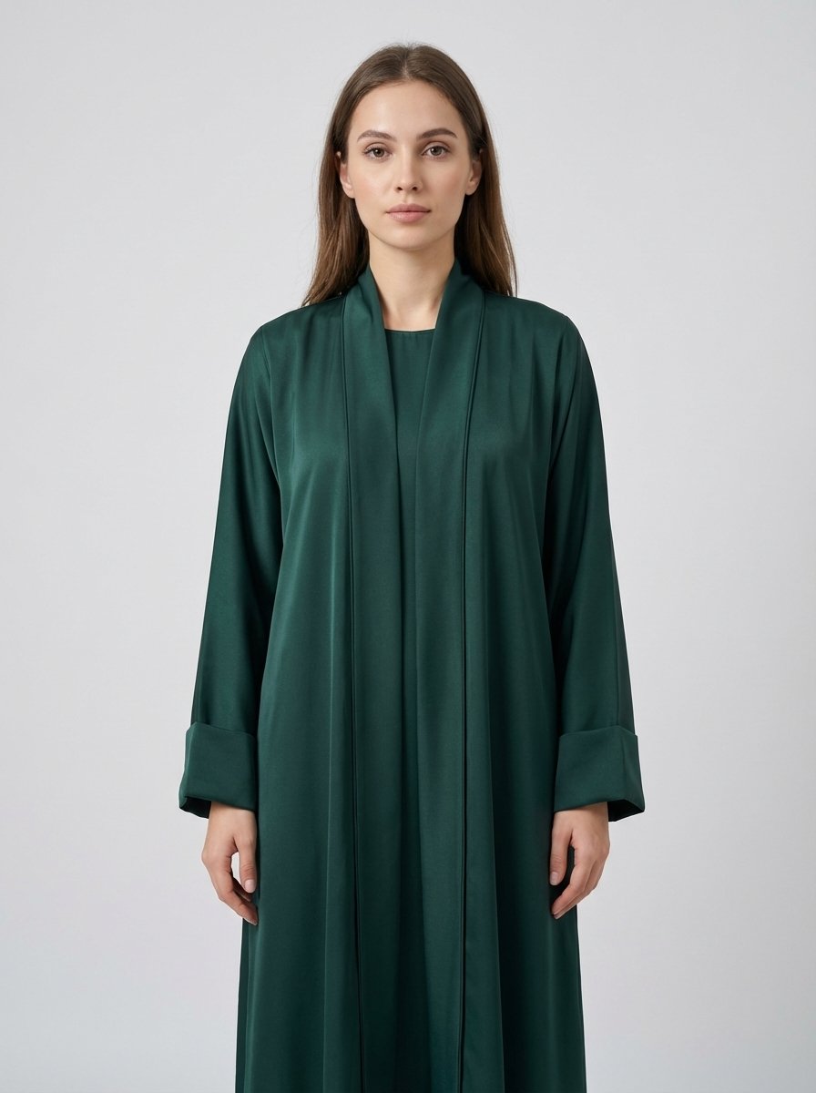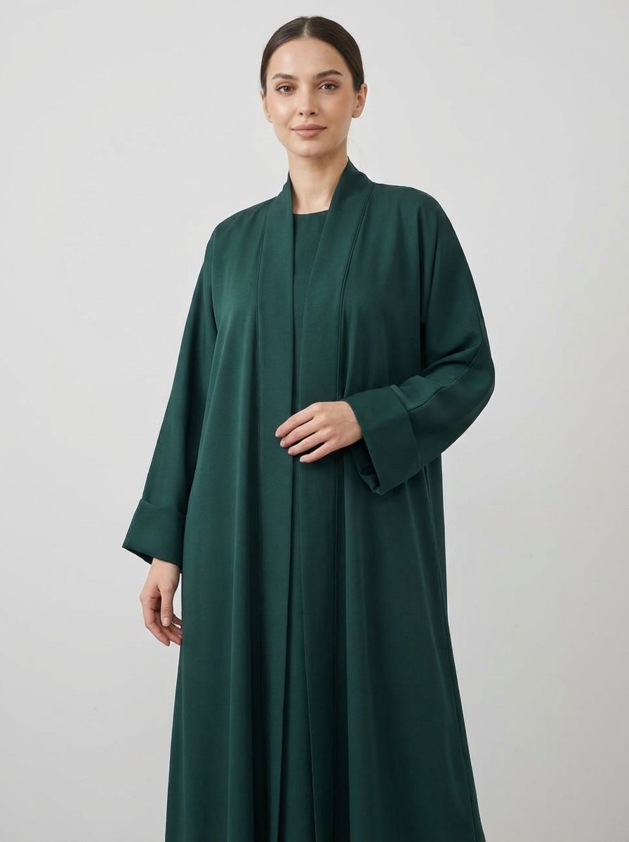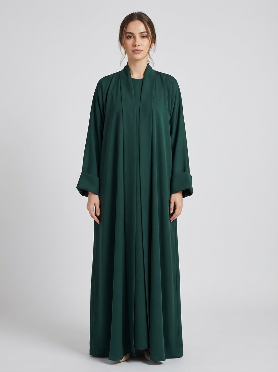 Be the first to review “Classic Forest Green Open Front Abaya Set”