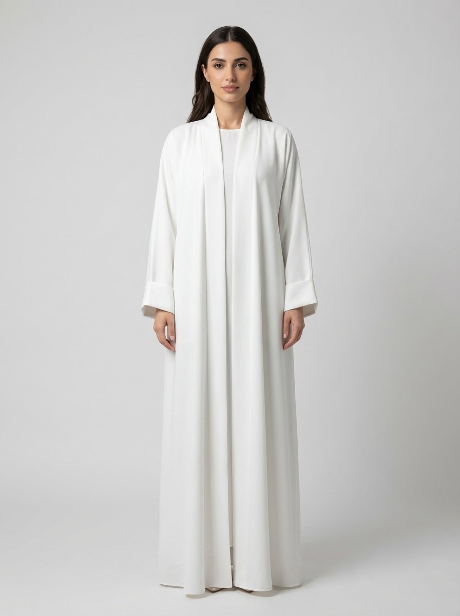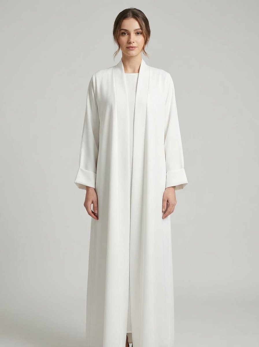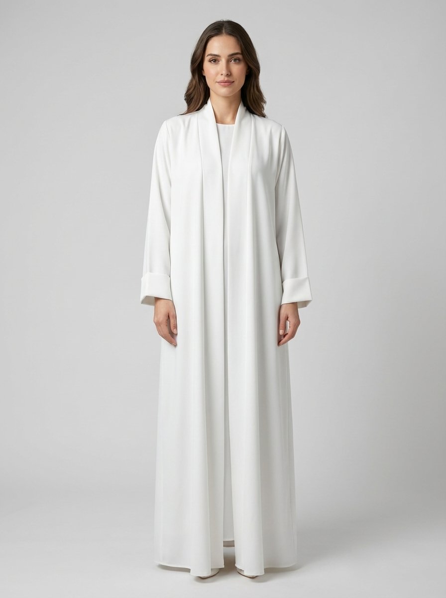 Be the first to review “Classic Pure White Open Front Abaya Set”