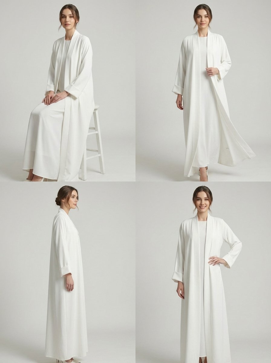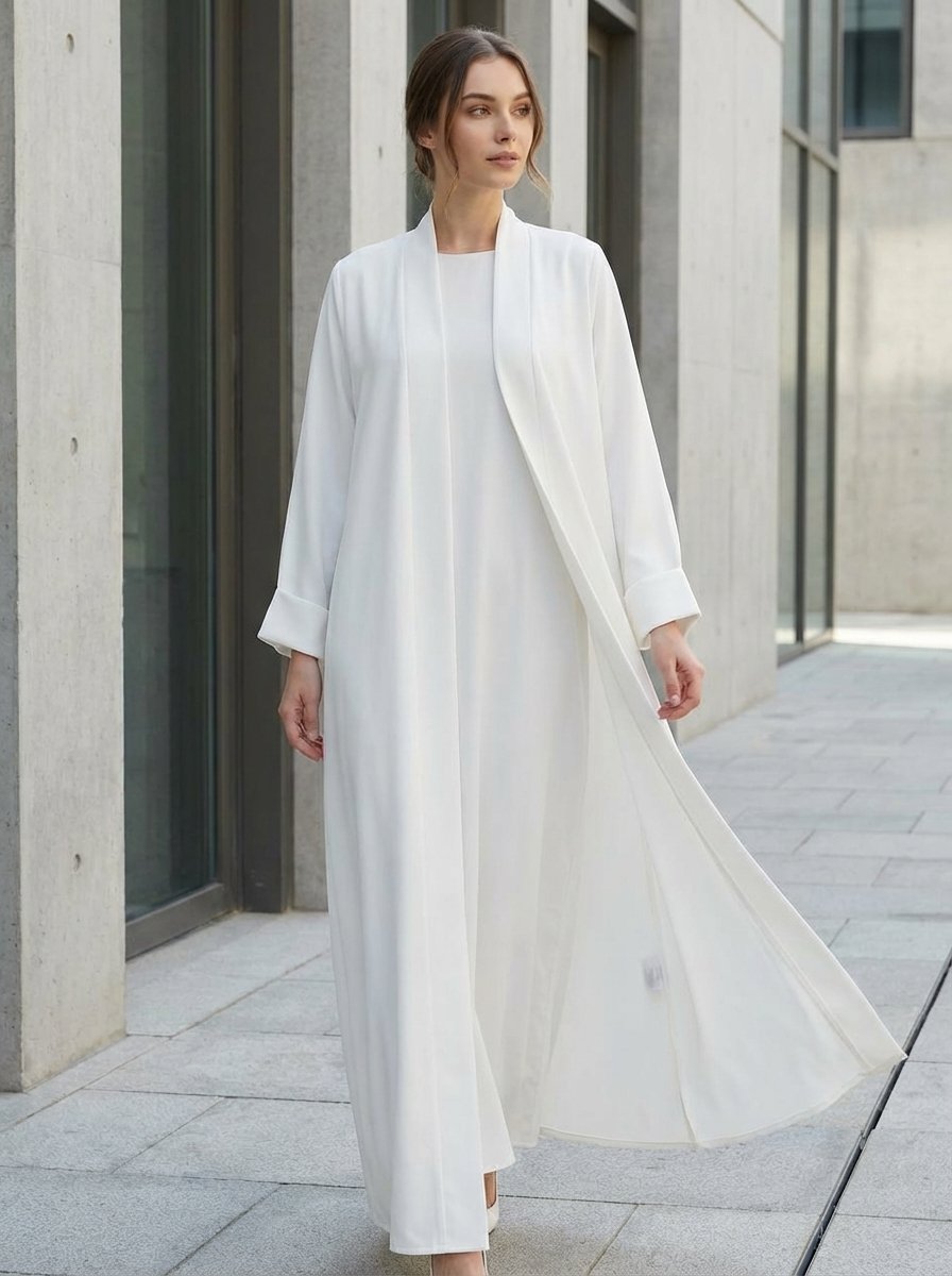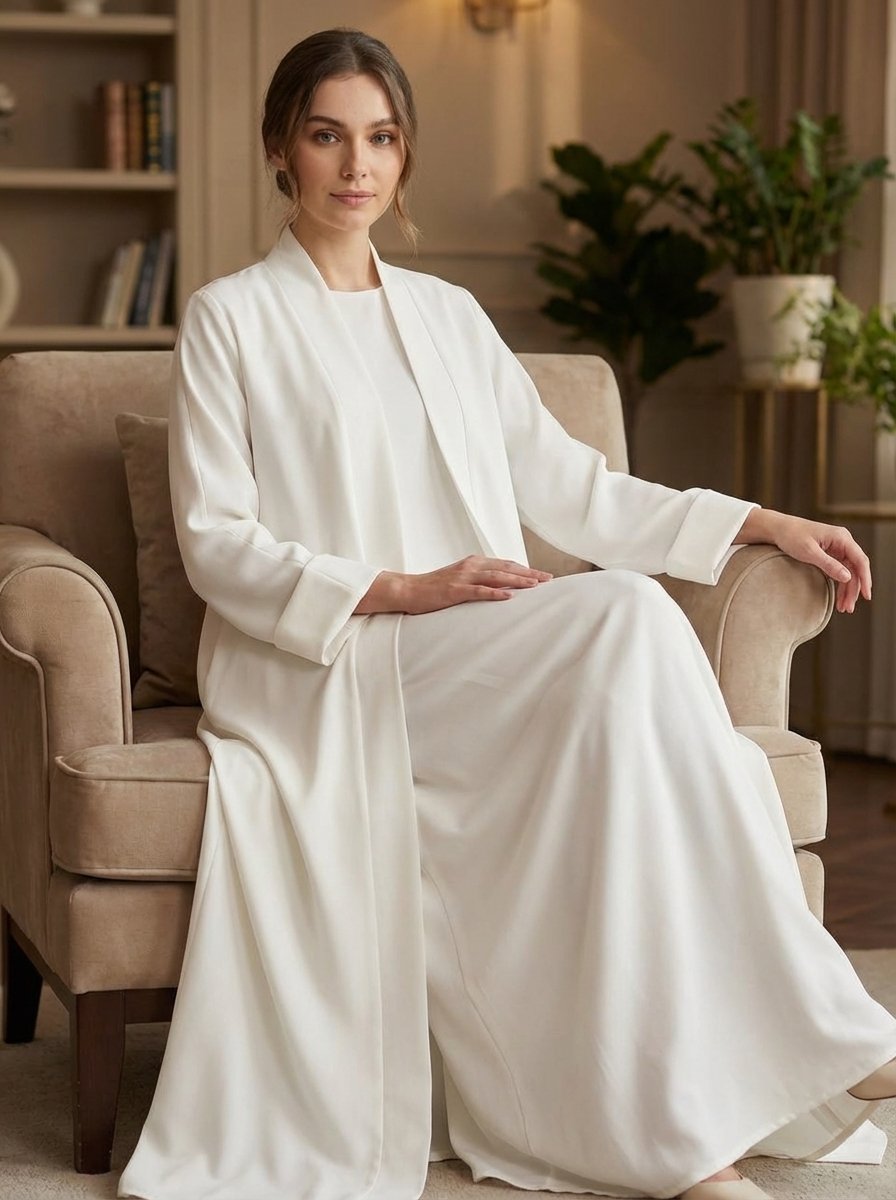 Be the first to review “Classic Pure White Open Front Abaya Set”