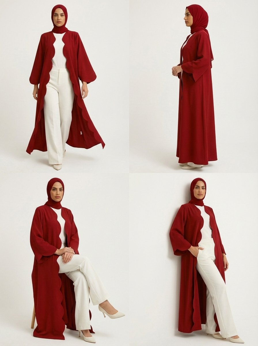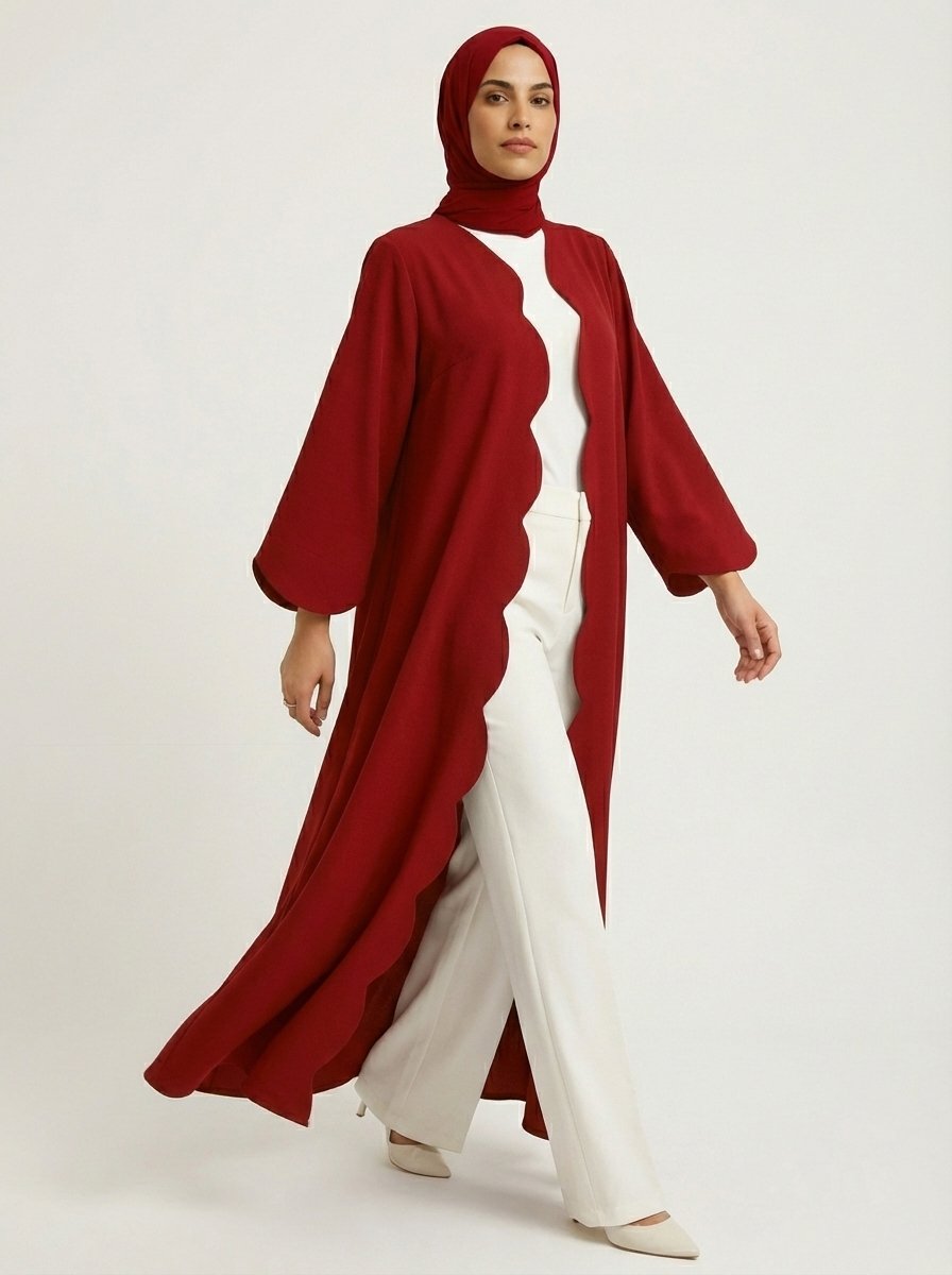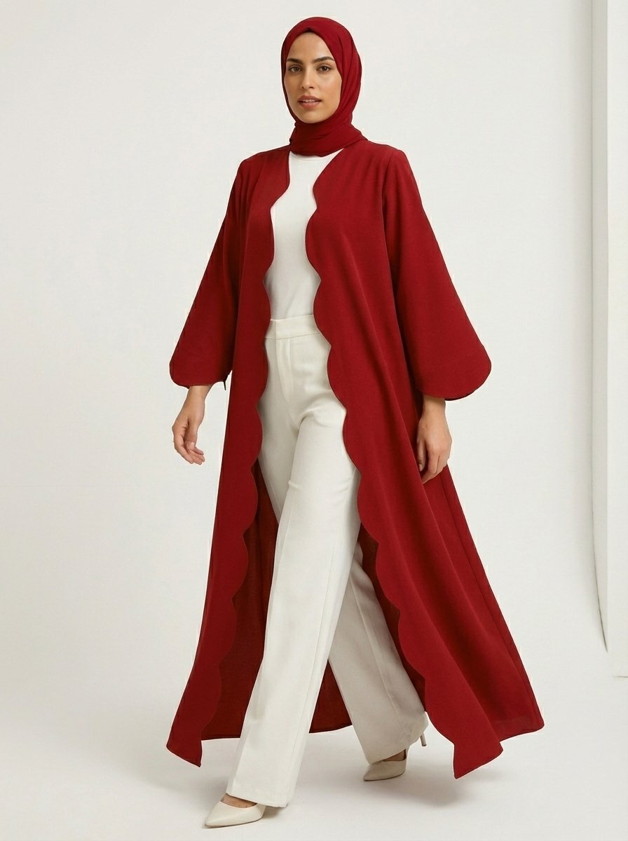 Be the first to review “Deep Red Scalloped Edge Open Front Abaya”